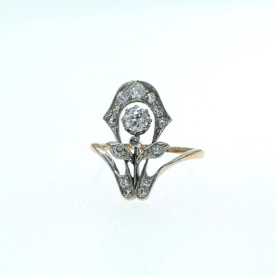 Original Jugendstil Ring aus 585er Gold mit Diamanten. Ringgröße 59/60