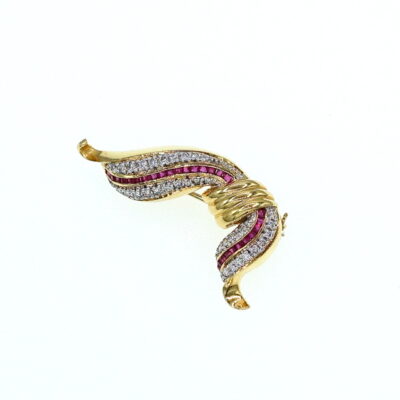 750er Goldbrosche mit Rubinen und Diamanten. länge ca. 42mm, Breite ca. 19mm