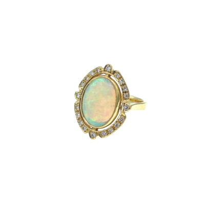 750er Gold Ring mit Opal und Diamanten. Ringgröße 54