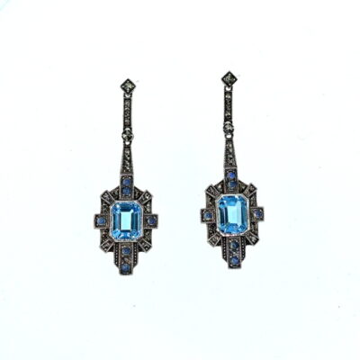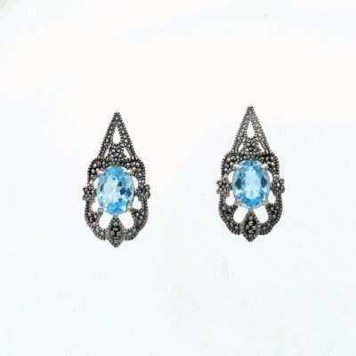 Ohrstecker aus 925er Silber mit Blautopas und Markasiten. Länge ca. 25mm