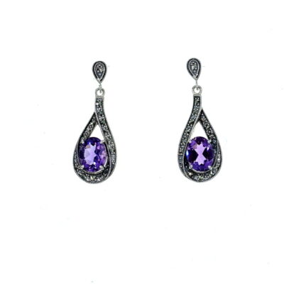 Lange Ohrstecker aus 925er Silber mit Amethyst und Markasiten. Länge ca. 35mm
