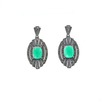 925er Silber Ohrstecker mit Achat und Markasiten. Länge ca. 35mm
