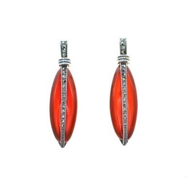 925er Silber Ohrstecker mit Karneol und Markasiten. Länge ca. 47mm