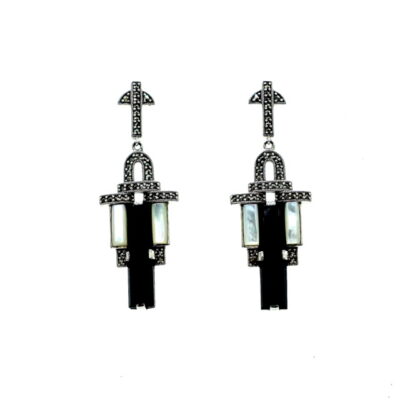 925er Silber Ohrstecker mit Onyx und Perlmutt. Länge ca. 48mm