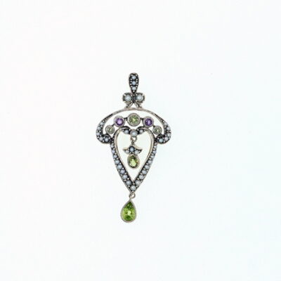 Anhänger aus 925er Silber mit Peridot, Amethyst, Perlen und Markasiten. Länge ca.45mm, Breite ca. 23mm