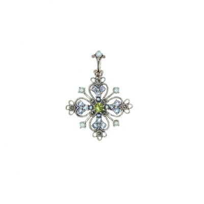 925er Silber Anhänger mit Blautopas, Peridot und Perlen. Länge ca. 35mm, Breite ca. 25mm
