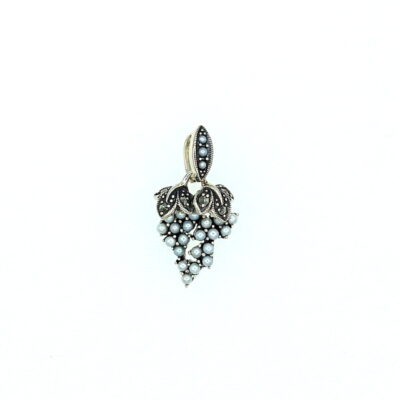 Filigraner 925er Silber Anhänger in Form einer Weintraube mit Perlen und Markasiten. Länge ca.25mm, Breite ca.13mm