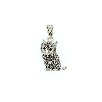 925er Silber Anhänger als Katze mit Granataugen und Markasiten. Länge ca.26mm, Breite ca.10mm