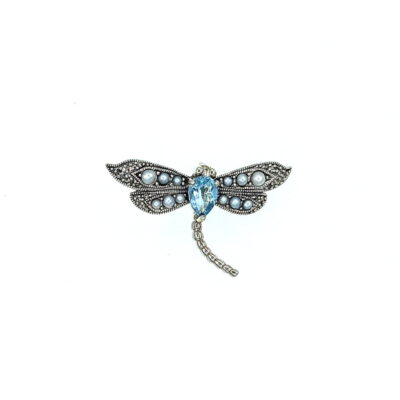 925er Silber Anhänger als Libelle mit Blautopas, Perlen und Markasiten. Länge ca. 20mm, Breite ca. 33mm