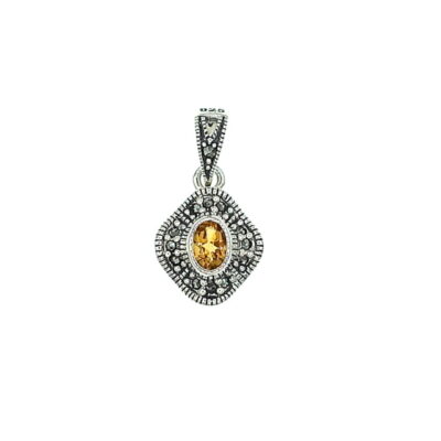 925er Silber Anhänger mit Zitrin und Markasiten. Länge ca. 23mm, Breite ca. 12mm
