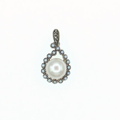 925er Silber Anhänger Perlen und Markasiten. Länge ca. 26mm, Breite ca.15mm