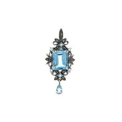 925er Silber Anhänger mit Blautopas, Perlen und Markasiten. Länge ca. 33mm, Breite ca.16mm
